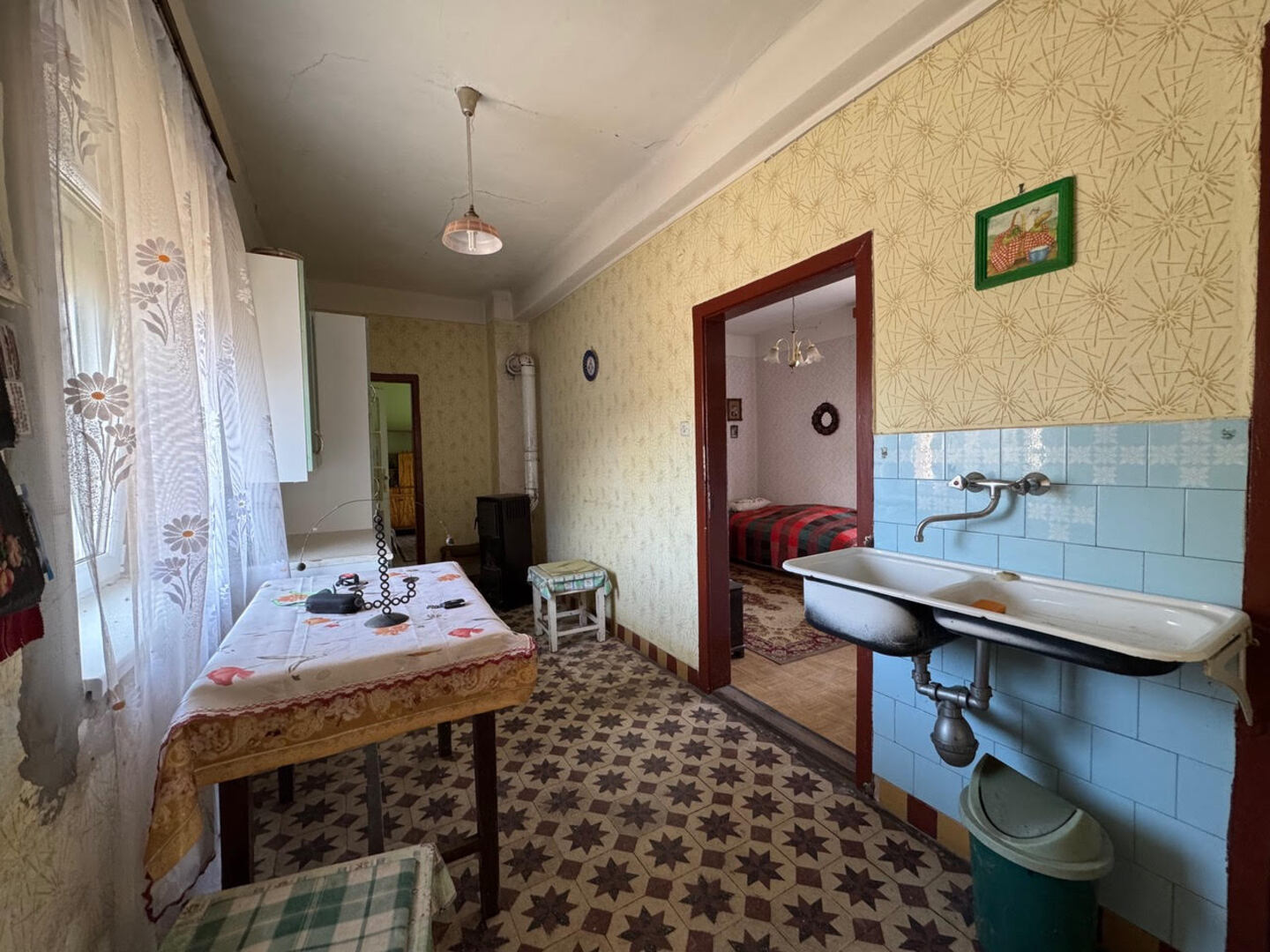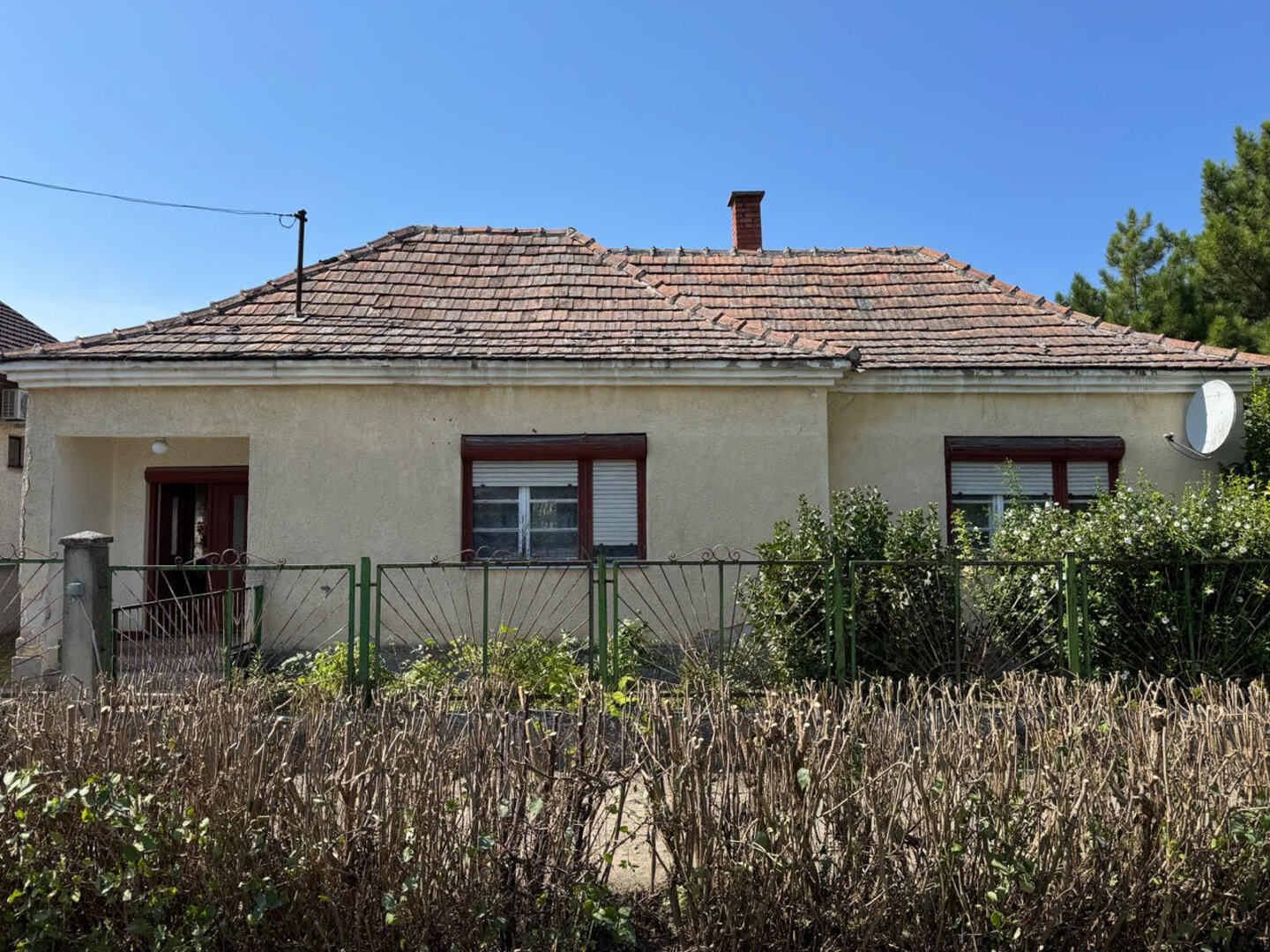Az ingatlan 1960-ban épült, beton alapú, tégla falazatú épület, mely felújítást igényel. Az ház melegét helyiségenként 3 darab fa tüzelésű kályha biztosítja.