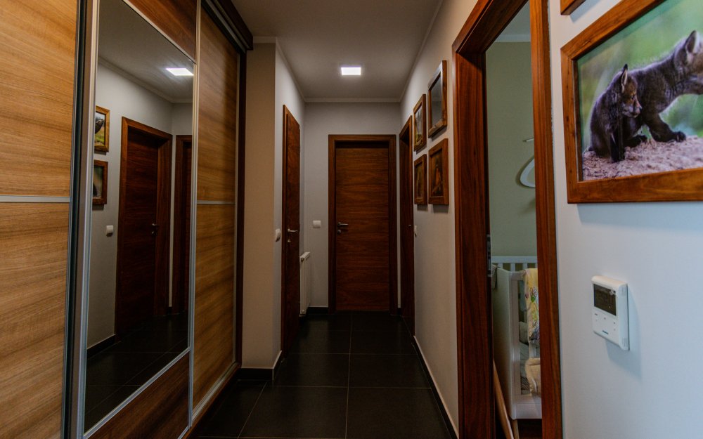 * Elegáns fa szalagparketta a szobákban és nappaliban