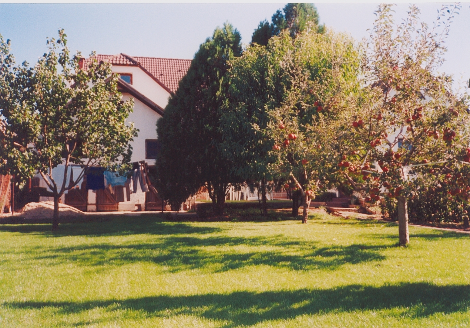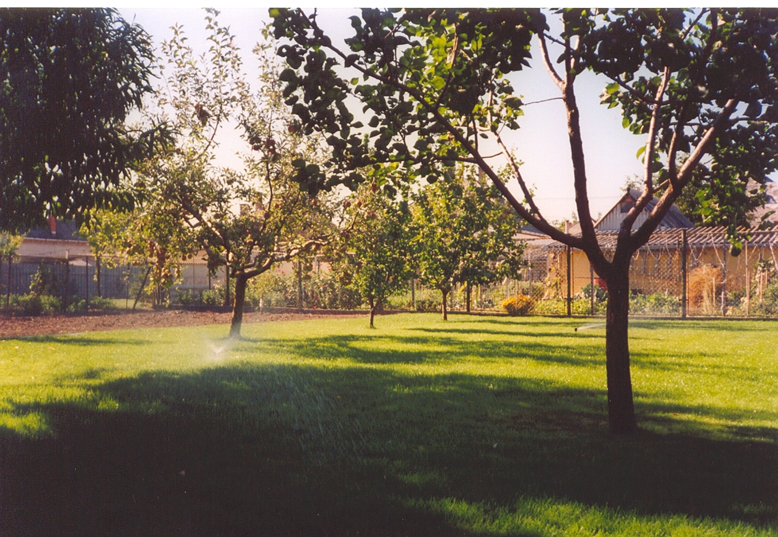 A parkosított, pihenővel kialakított udvar tovább növelik az ingatlan értékét. A gondozott kertben gyümölcsfák találhatóak, a füves részen öntözőrendszer is kiépítésre került.