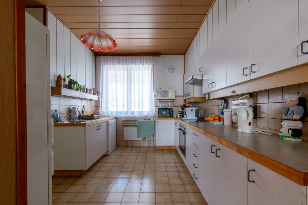 A közel 140 m²-es lakóterületű épület praktikus elrendezéssel készült, amely kényelmes életteret biztosít egy nagyobb család számára is.