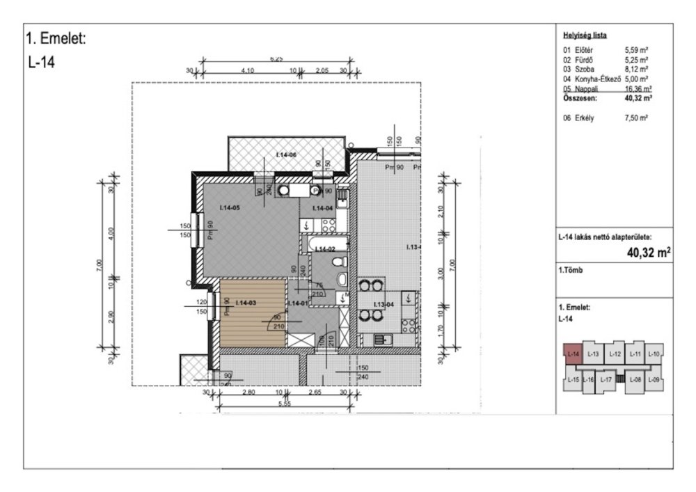 Jelen hirdetésben szereplő első emeleti lakás 40,32 m2 hasznos alapterülettel rendelkezik, elosztását tekintve rendelkezik egy amerikai konyhás nappalival, hálószobával, egy fürdőszobával, valamint egy 7,5 m2 nagyságú erkéllyel.