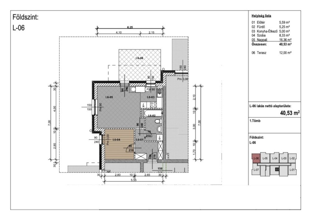 Jelen hirdetésben szereplő fölszinti lakás 40,53 m2 hasznos alapterülettel rendelkezik, elosztását tekintve rendelkezik egy amerikai konyhás nappalival, hálószobával, egy fürdőszobával, valamint egy 12 m2 nagyságú terasszal.