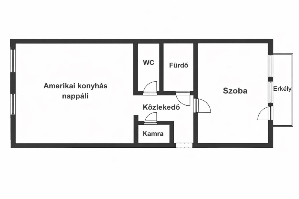A közlekedőből kamra is nyílik, amely praktikus tárolási lehetőséget biztosít. A különálló hálószobából érhető el az erkély, amely ideális helyszíne lehet a pihenésnek.