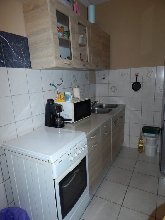 A csempe a konyhában, és a fűrdőben is jó állapotban van.