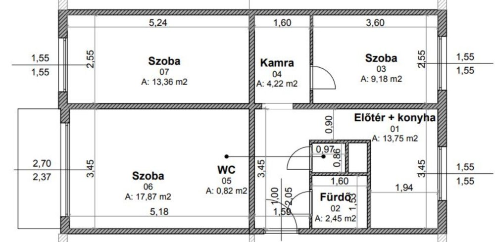 A két hálószoba között lévő hall,akár étkezőként is használható.