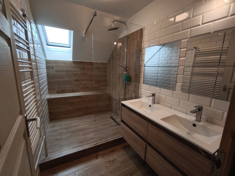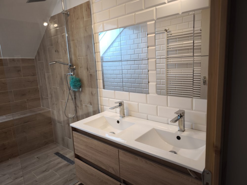 Összessen így 4 szoba+2 fél szoba is rendelkezésre áll az új tulajdonos számára. Minden helyiségben kíváló minőségű burkolatok lettek felhelyezve.