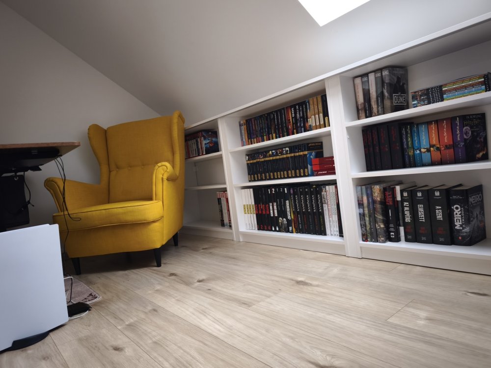 Az otthon összeköttetésben van egy padlásszobával is amihez egyedülálló haszonélvezeti joggal rendelkezik.