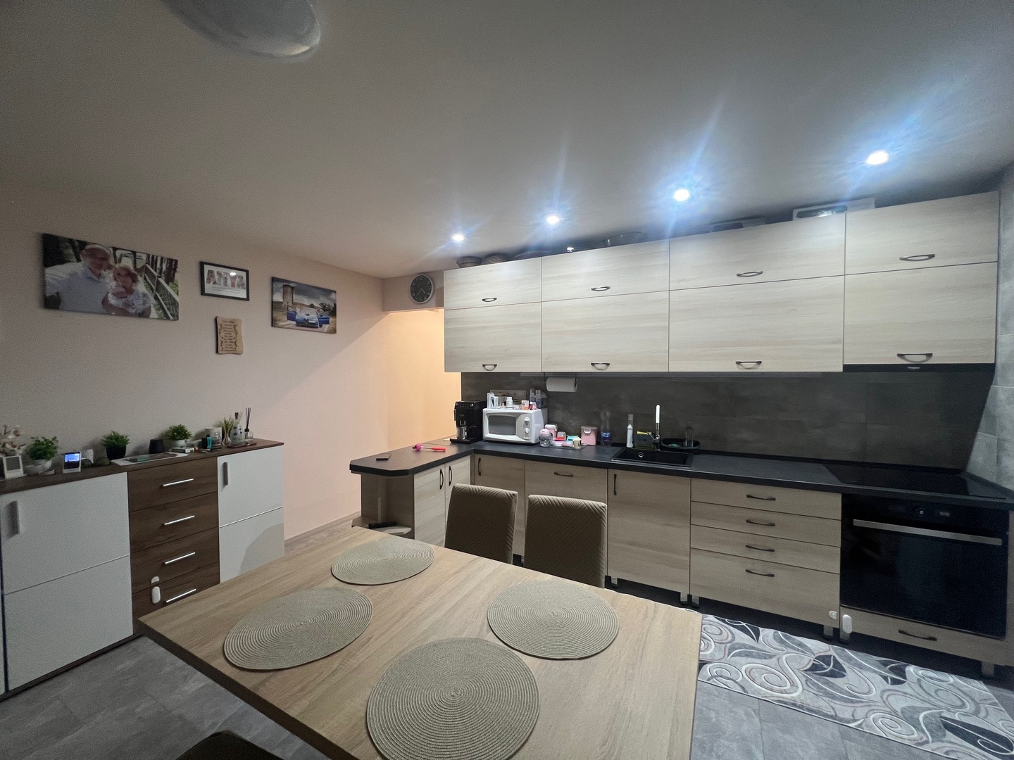 A konyhabútor minőségi gépesítéssel, és a beépített bútorok a vételár részét képezik.