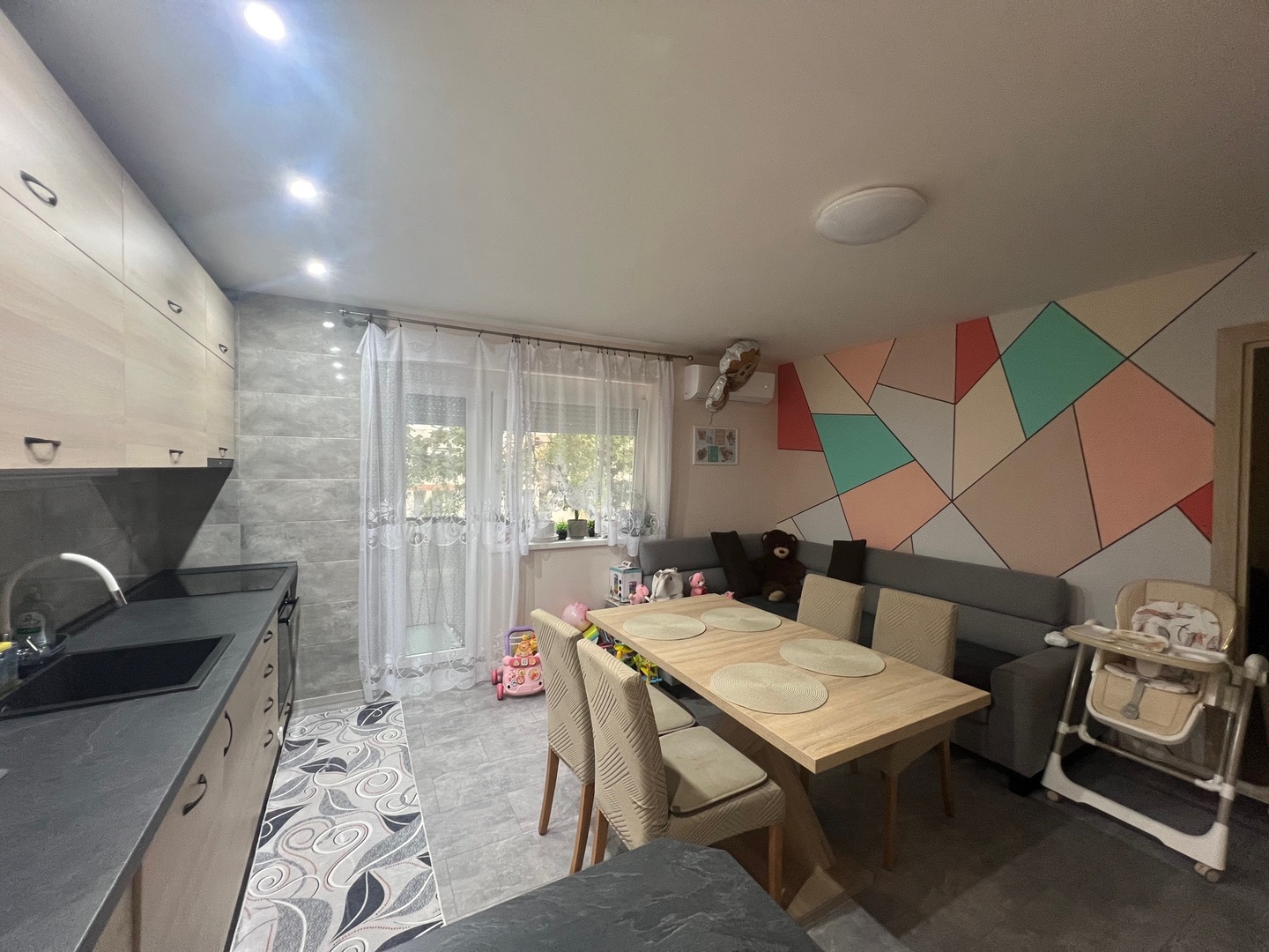 A lakás tervezésénél elsődleges szempont volt a családias és modern jegyek ötvözése.