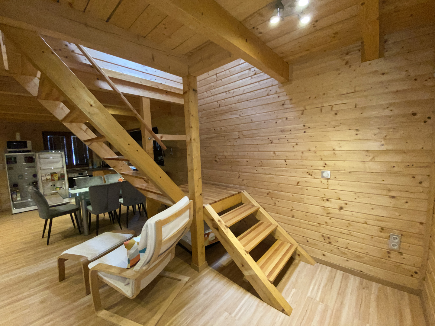 A könnyűszerkezetes ház helyiségei fa padlóval, a fürdő járólappal burkolt. Fűtéséről elektromos fűtőberendezés, és elektromos panel, meleg víz ellátásáról villanybojler gondoskodik. A családi fészek, az épület alatti fúrt kútból nyeri a vízigényét.