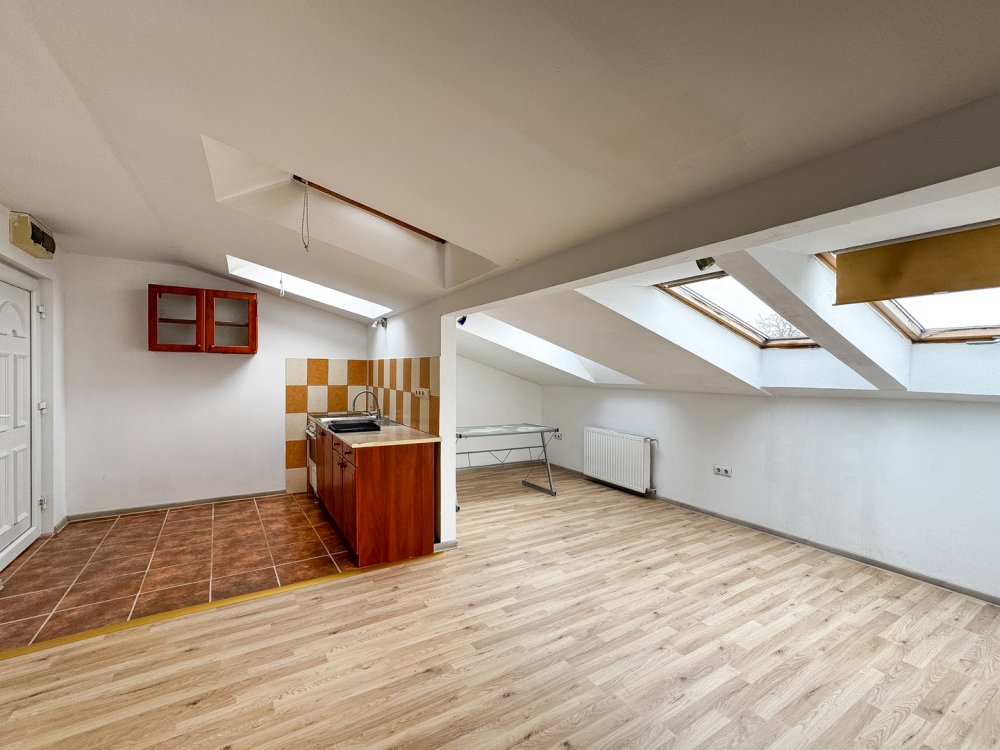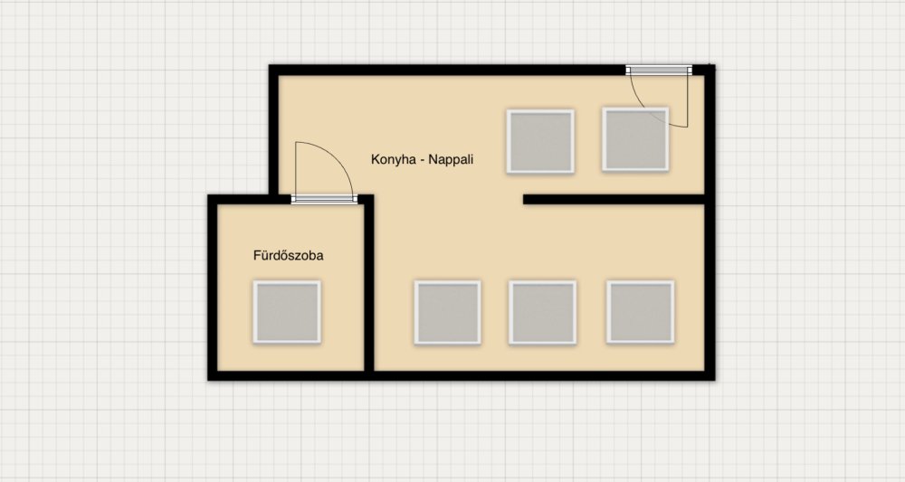 A lakás egy tégla építésű társasház 2. emeletén helyezkedik el, melynek hasznos alapterülete 19 m2. Elosztását tekintve áll egy konyha-étkező-nappaliból és egy fürdőszoba- WC-ből.