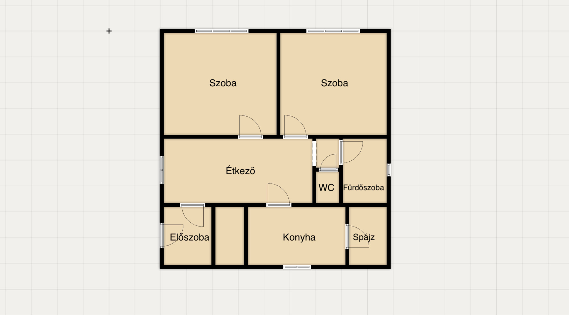 Elrendezését tekintve rendelkezik 2 hálószobával, étkező- nappalival, egy konyhával, spájzzal egy fürdőszobával, külön WC-vel, előtérrel.